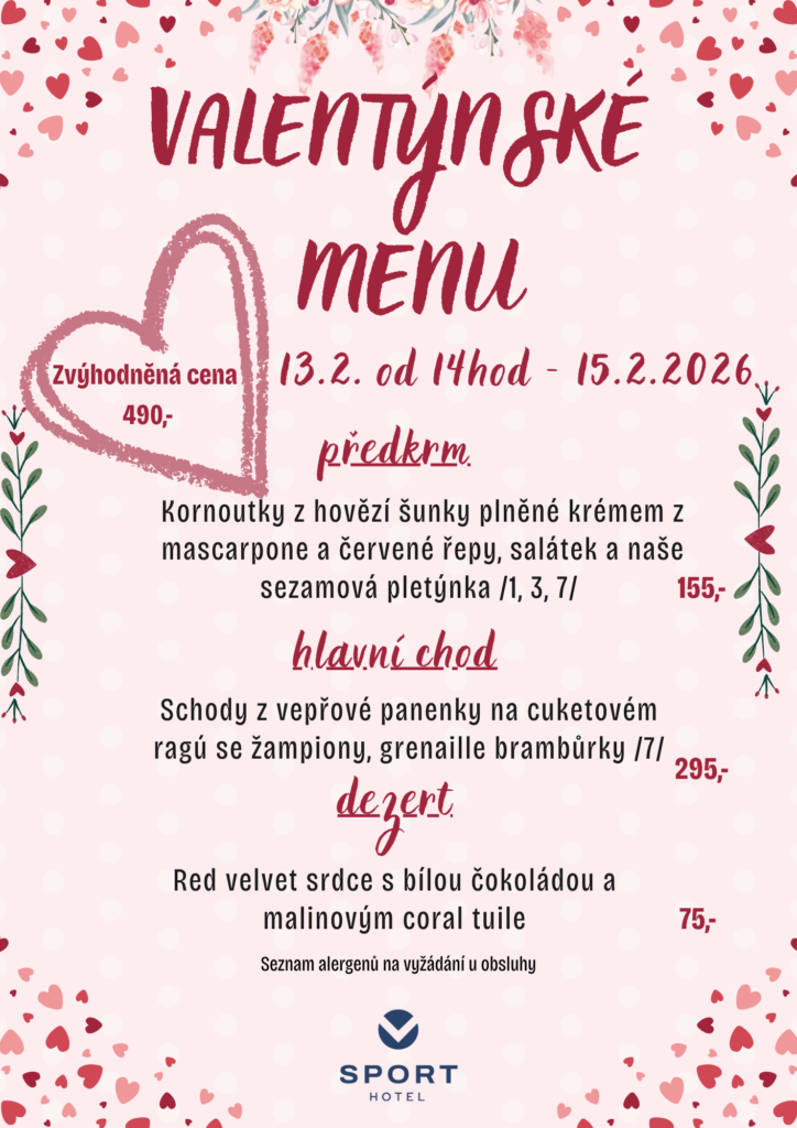 14.2.2026 VALENTÝNSKÉ menu, pobyt
